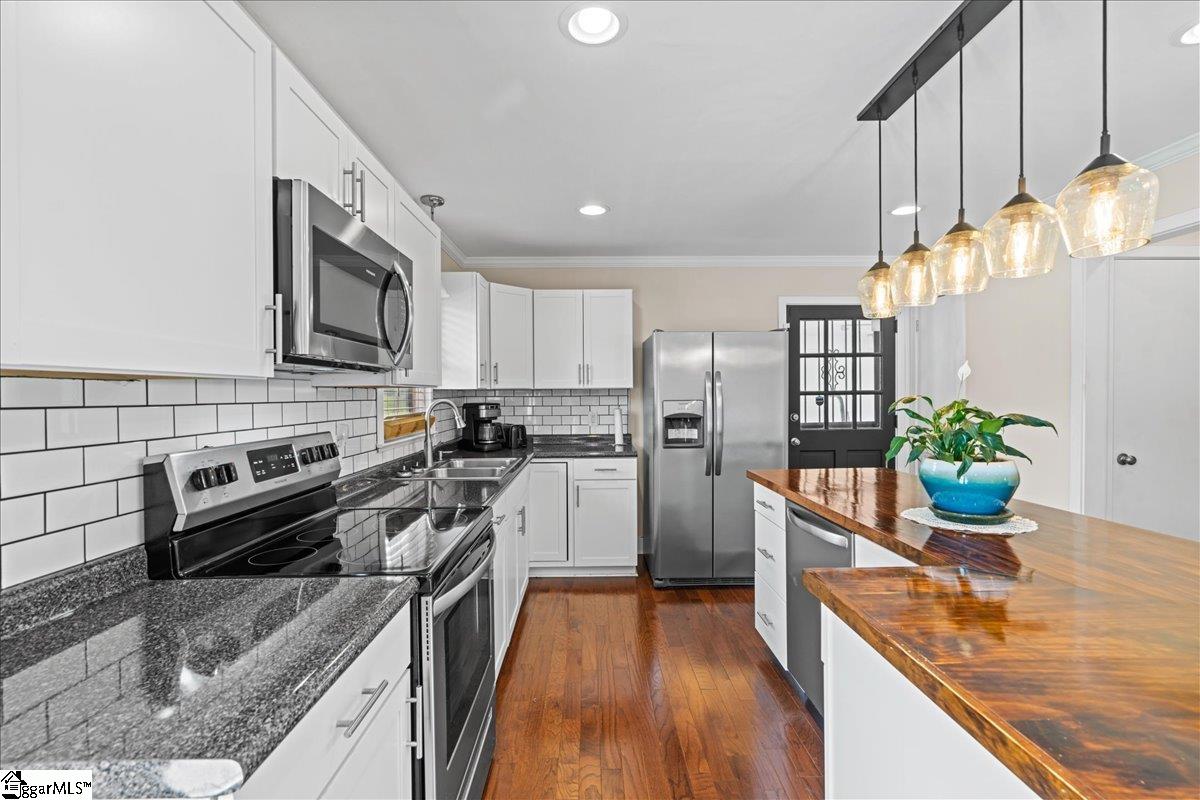 Tik Tok! The clock is ticking on this one! Welcome to 165 Wick St. in Boiling Springs, South Carolina! This charming 3-bedroom, 2-bathroom MASTER ON THE MAIN home is a true gem. Nestled in a peaceful neighborhood, the property has .66 fenced-in acres with a carefully manicured yard and oversized two car garage! The well-appointed kitchen has all the features you are looking for in an open space. The wood countertop is a beautiful accent to the top of the center island, illuminated by the pendant lighting and surrounded by pristine white cabinetry. Natural light floods the living areas and reflects off the hardwood flooring, creating a warm and inviting atmosphere. If you exit out to the king-sized deck you can't help but notice the beauty and size of the fenced-in backyard which will provide an ideal spot for outdoor gatherings and relaxation. With a well-maintained board-and-batten exterior and a two-car garage, this home offers both comfort and convenience. Enjoy the best of suburban living with easy access to local amenities, Boiling Springs Schools, and parks at a competitive price! Don't miss the opportunity to call this place your home!